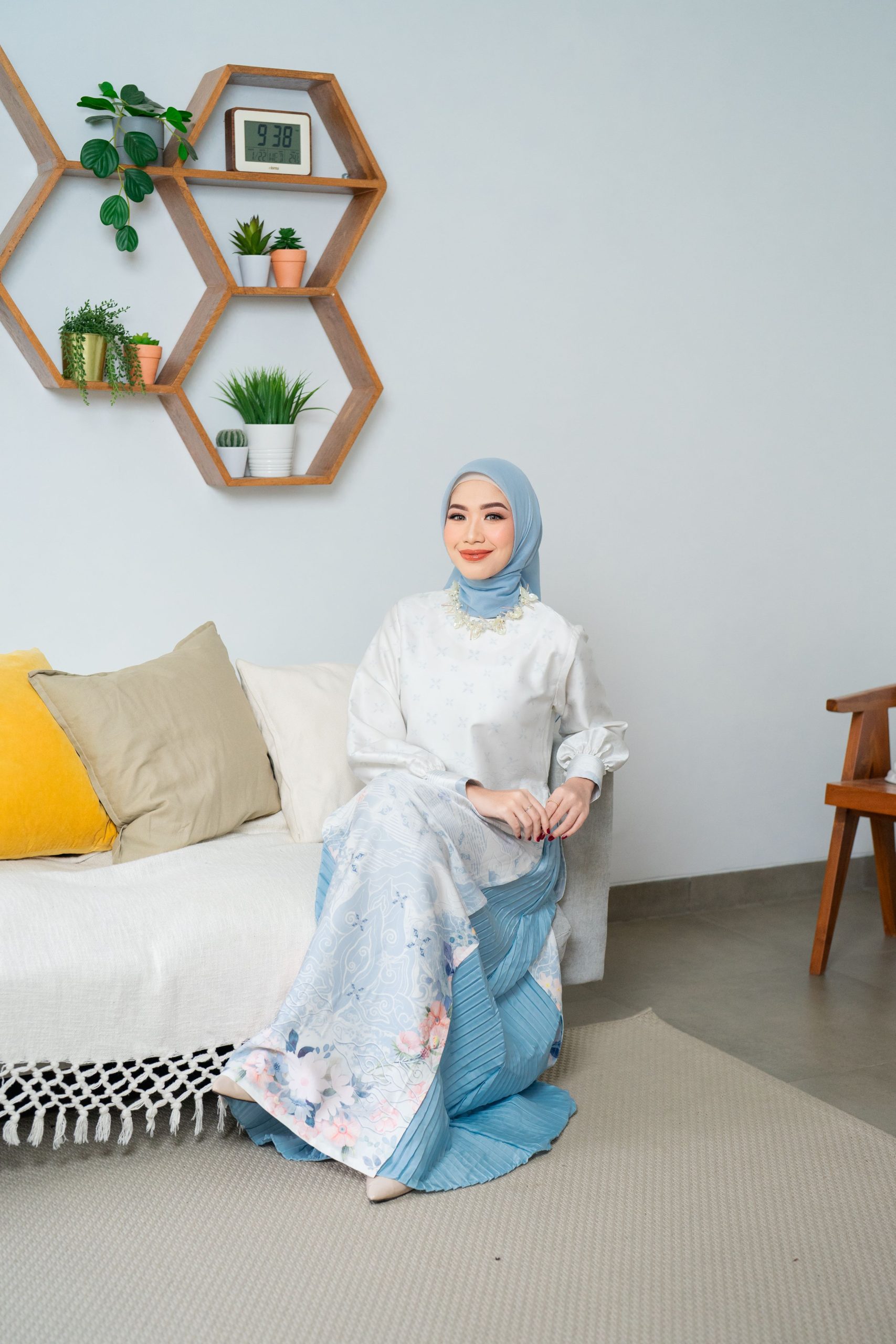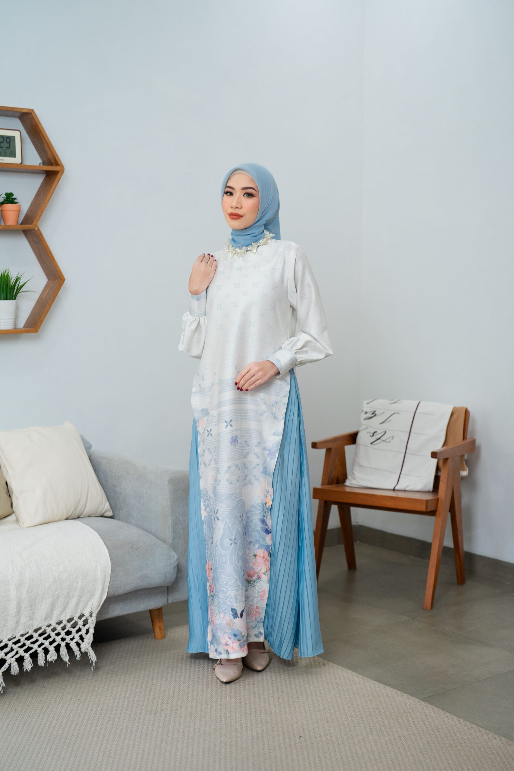 Warna: Putih Biru dengan Motif Batik Pastel