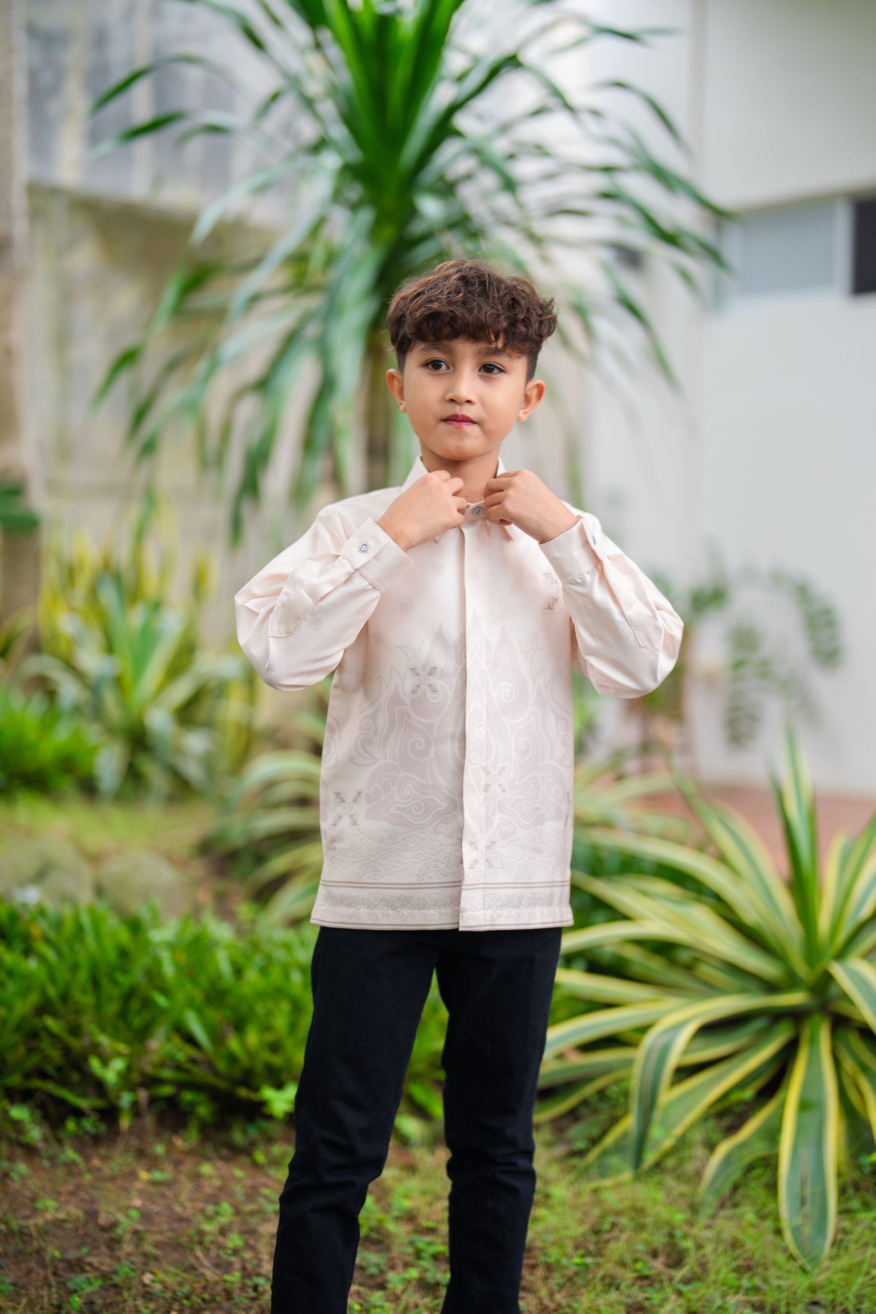Kemeja Anak Batik Elzara Garatris Series, menggabungkan kenyamanan bahan satin, serta desain modern yang stylish.